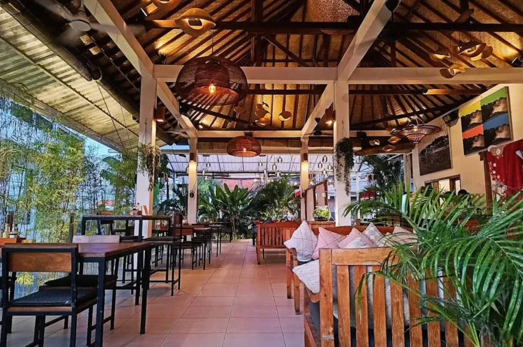 تُعد الجلسات الخارجية وسط الطبيعة من أجمل ما يميز مطاعم بالي، خاصة لمحبي الأجواء الهادئة بين الأشجار الخضراء أو بجوار الشلالات، مما يجعل الوجبة تجربة استرخاء متكاملة.